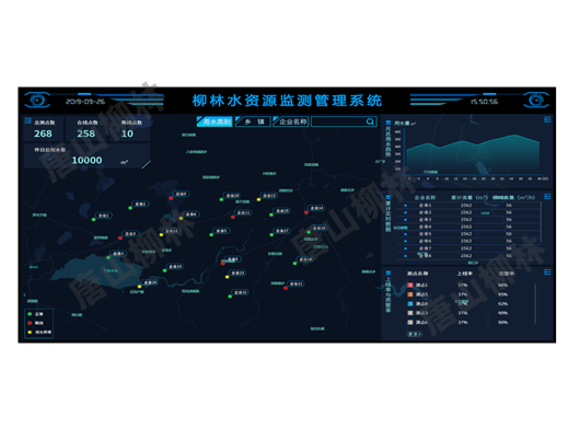 唐山柳林水資源監控管理平臺包含水資源監測一張圖、GIS地圖、實時數據顯示、歷史數據查詢、報表統計、報警數據、巡檢管理和日志查詢等功能板塊,并可根據客戶需求定制調度大屏及其他功能板塊開發。